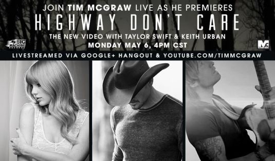 Tim is unveiling his video for “Highway Don’t Care” with Taylor Swift, featuring Keith Urban on guitar, live to fans worldwide on Monday, May 6 in a first-ever music video premiere event with Google+ Hangout. The video, directed by Shane Drake, features dramatic and heart-stopping footage for the triple threat collaboration that is driving to the top of the charts. Currently in the Top 10 on the country radio charts, the track has already sold over 500,000 downloads to date and is the third single from McGraw’s latest album, TWO LANES OF FREEDOM. McGraw will premiere the video in Nashville at 4:00 PM CST in front of a live audience with fans from around the globe also participating in this landmark event. Additionally, the Google+ Hangout will be livestreamed on YouTube.com/TimMcGraw. For more details, visit TimMcGraw.com or Google.com/+TimMcGraw.